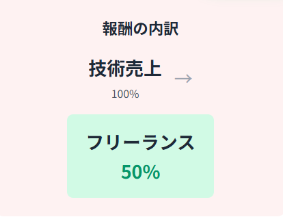 技術売上の50%が報酬。最低保証は1日12,000円です。