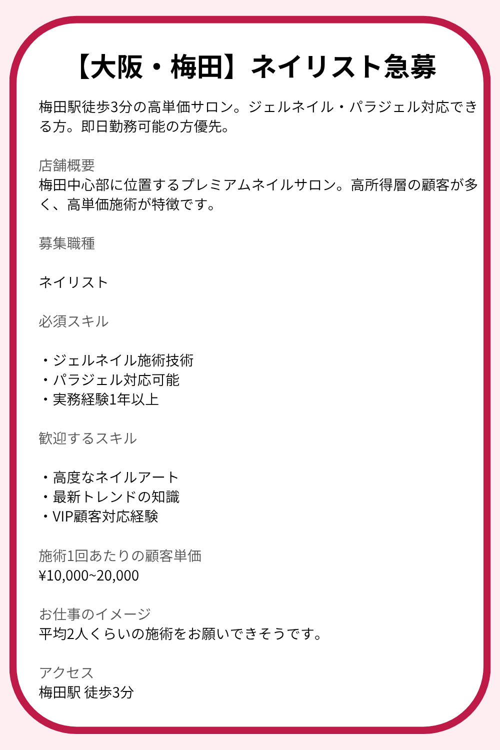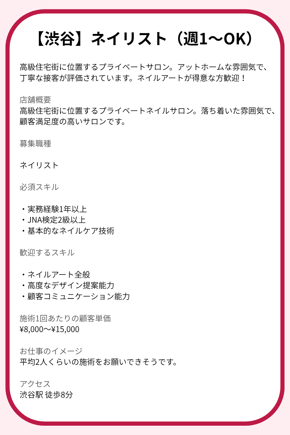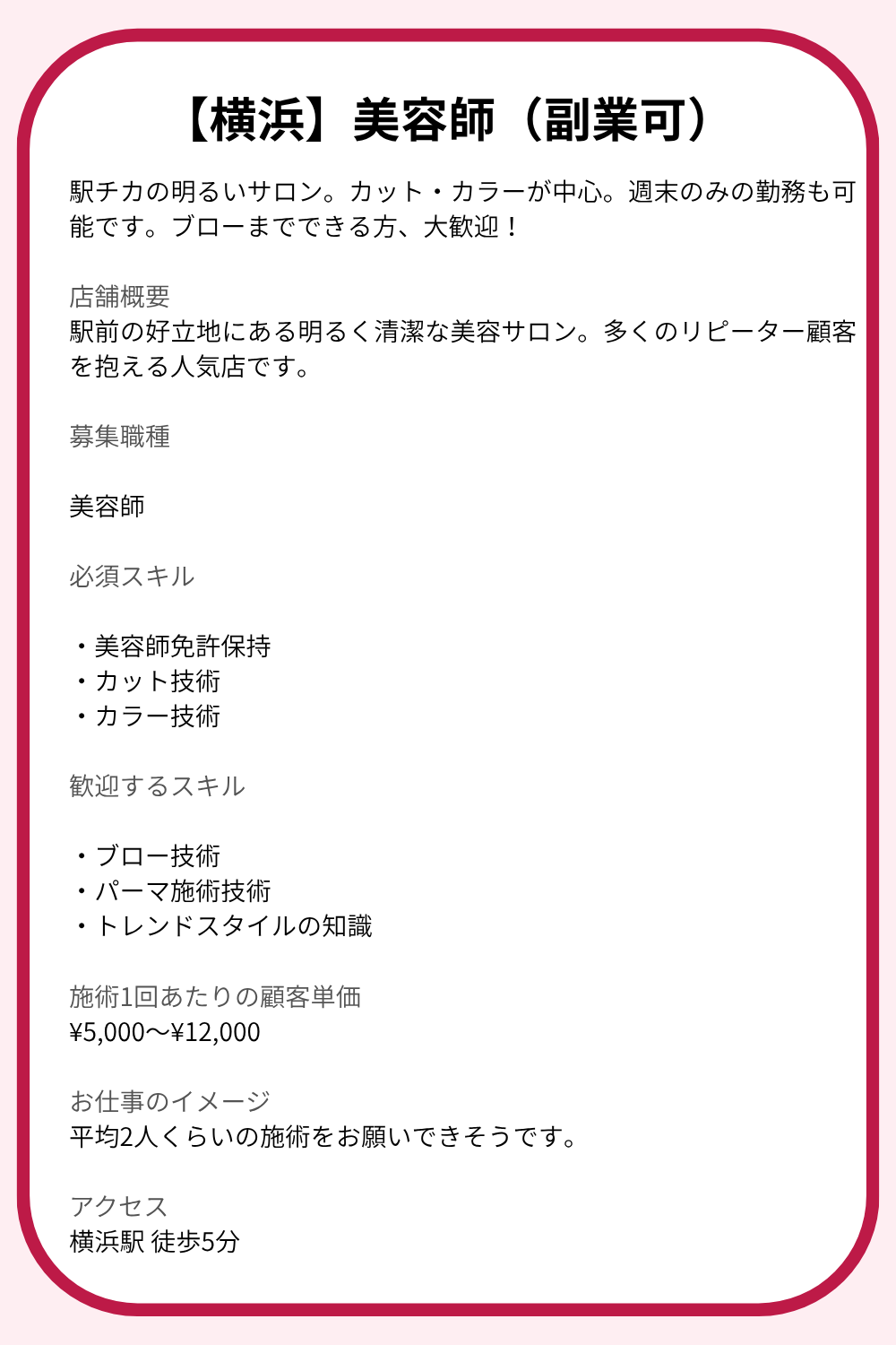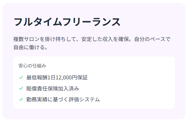 • 💡 「副業でスキルを活かしたい」→ 好きなサロンで働ける