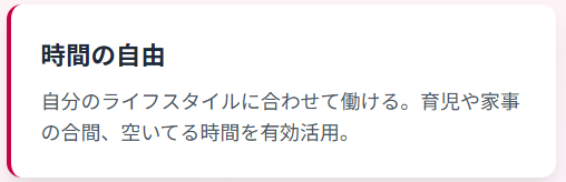 • 💡 「育児や家事の合間に」→ 空いた時間で収入を